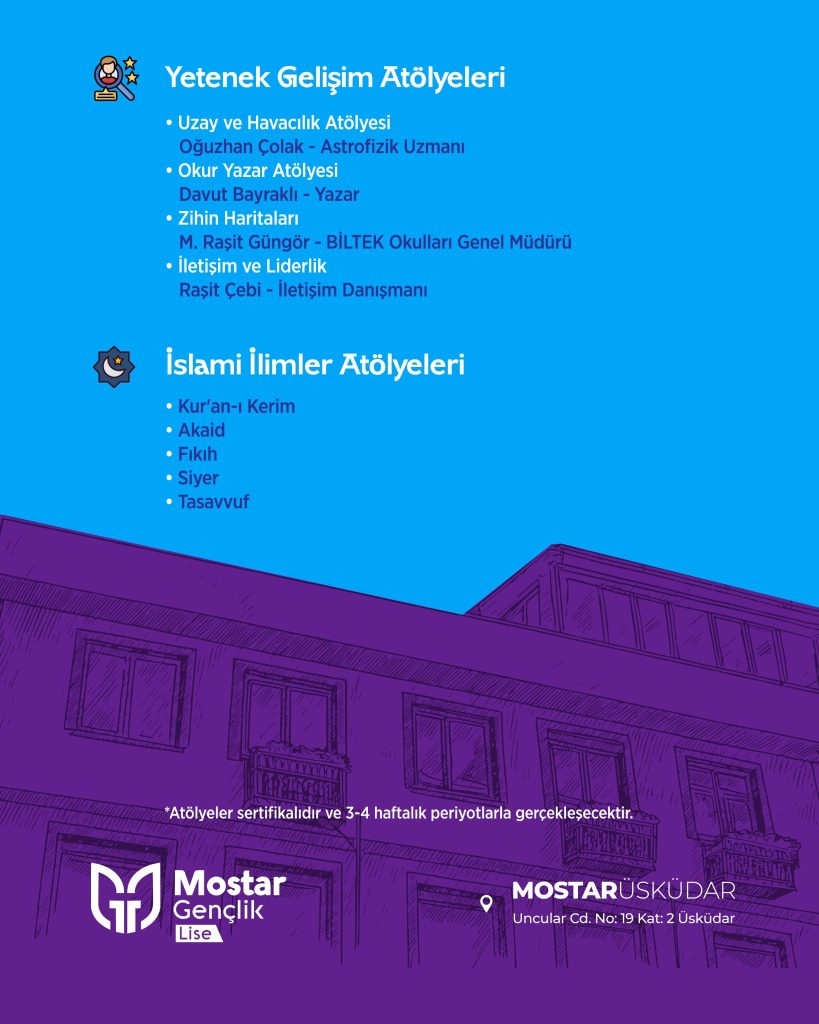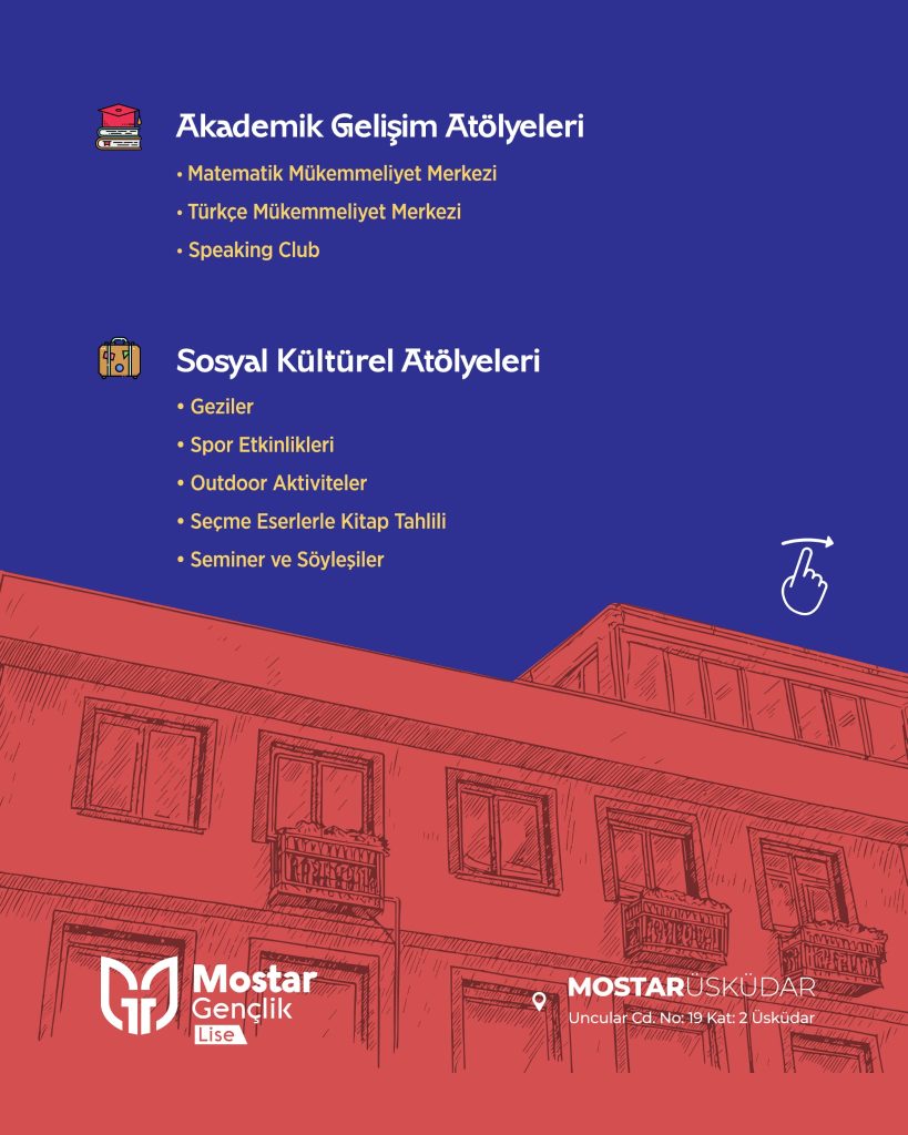 Bu atölyeler üniversite ve iş hayatına hazırlandığın en önemli dönem olan lise yıllarında edinmen gereken temel nitelikleri sana kazandırmayı hedeflemektedir.